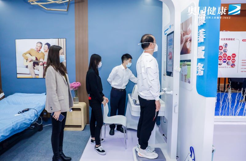 在展廳內(nèi),悅服務及高端服務區(qū)向觀眾展示了奧園健康對物業(yè)服務價值與內(nèi)涵的持續(xù)探索創(chuàng)新;社區(qū)團購區(qū)線上線下聯(lián)合,創(chuàng)新展示供應生態(tài)鏈,觀眾掃碼進入小程序即可下單大量優(yōu)質(zhì)商品??叼B(yǎng)體驗區(qū)的多功能護理床、健康體檢一體機與“奧悅家”6A智慧社區(qū)的智能屏和可視對講機等設備更是吸引了眾多觀眾親身體驗,感受前沿智能的健康服務。此外,現(xiàn)場設置了網(wǎng)紅打卡點與“開啟智慧生活”互動區(qū),以“場景+體驗”模式,點燃活動氛圍。