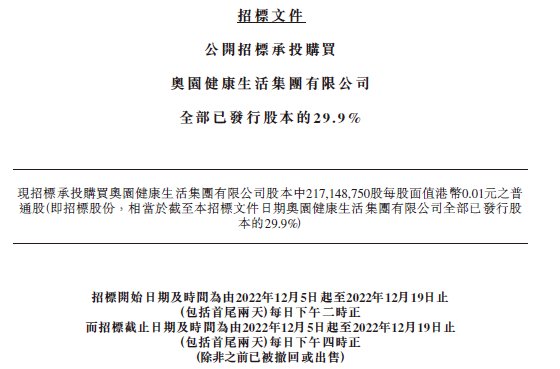 招標(biāo)文件—公開招標(biāo)承投購買 奧園健康生活集團有限公司 全部已發(fā)行股本的29.9%